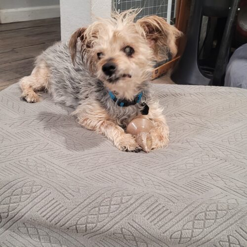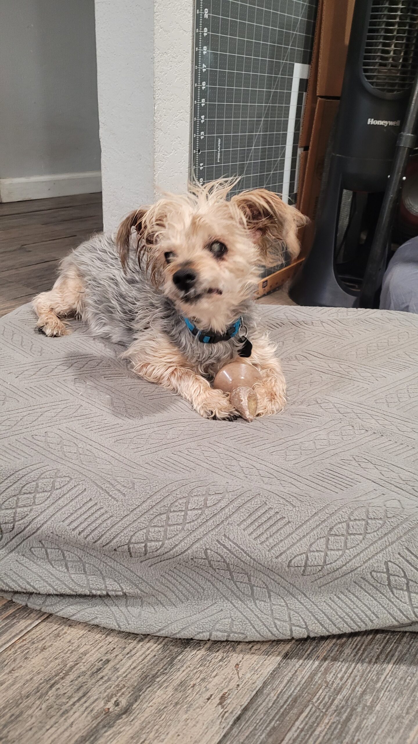 Georgie initially had severe separation anxiety. We weren't sure at first if he would accept all the changes that had happened to him. But after a few days he seemed to settle into the new routine. He knows where the doggie door is and how to go out and in. He has found his favorite place to nap and has settled in nicely.