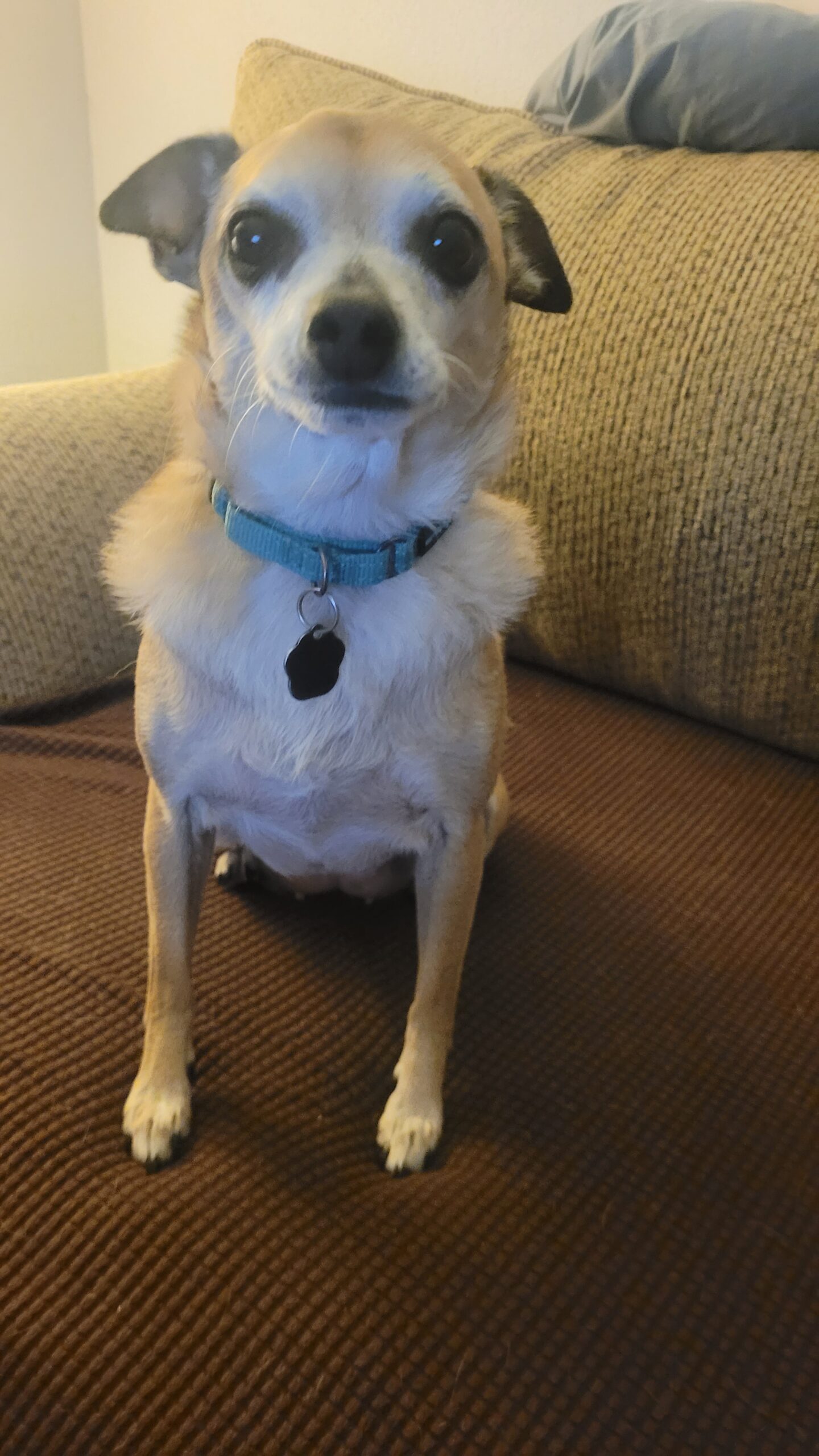 Now that she's feeling better this girl is so happy. She loves to lay in the sun or up on the couch watching TV. She will do her best to snuggle right behind you, between you and the couch cushion. She does get excited when her people come home but she does settle easily.