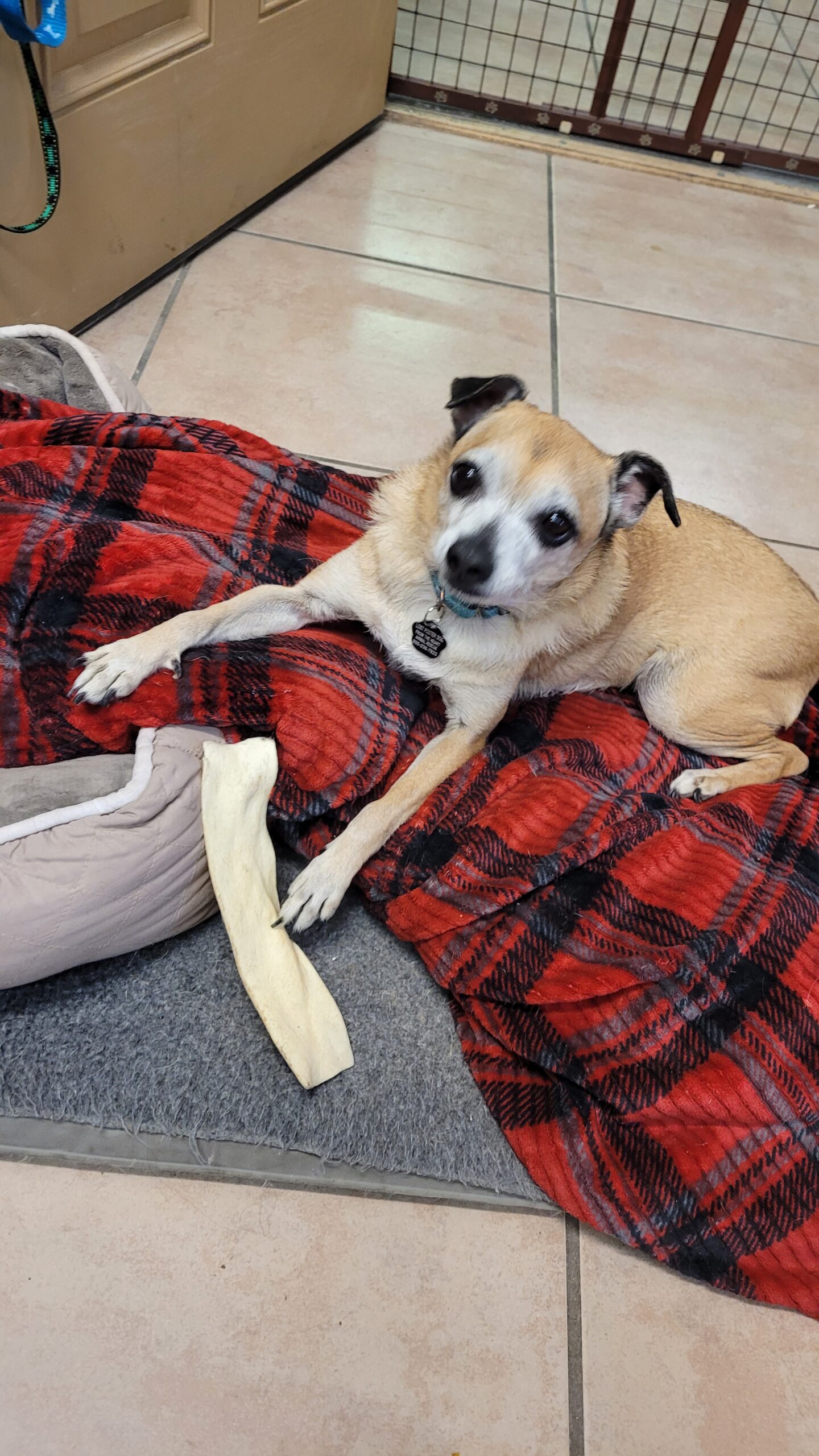 She came to us with a completely rotten mouth. It was so bad you could smell her before you saw her. On her intake visit the vet did an emergency dental because the infection was so bad, and Toots lost all her teeth. It took almost 3 weeks for the infection to go away. She also had a large lipoma on her chest that we had to wait to remove because of the bacteria in her mouth.